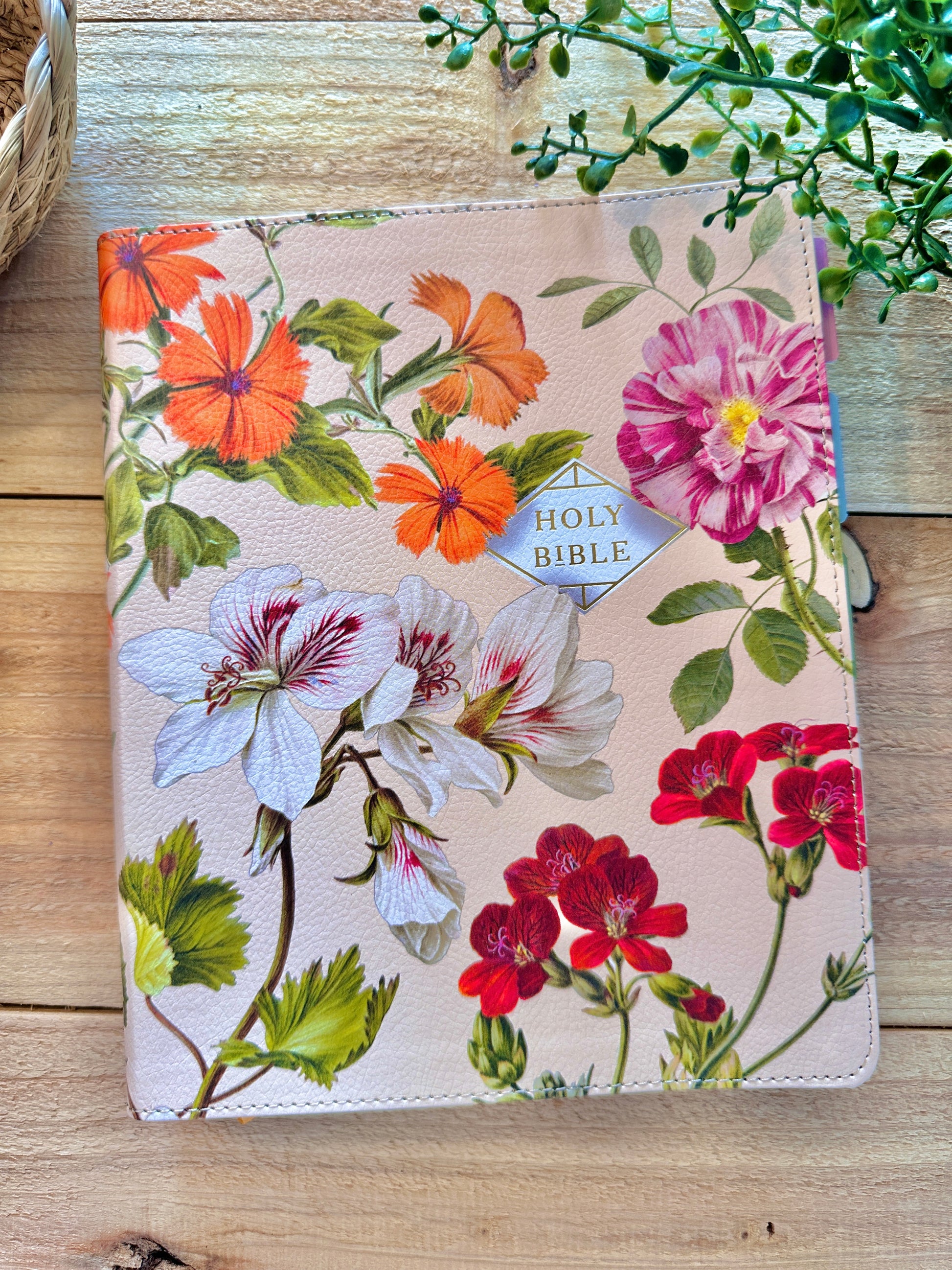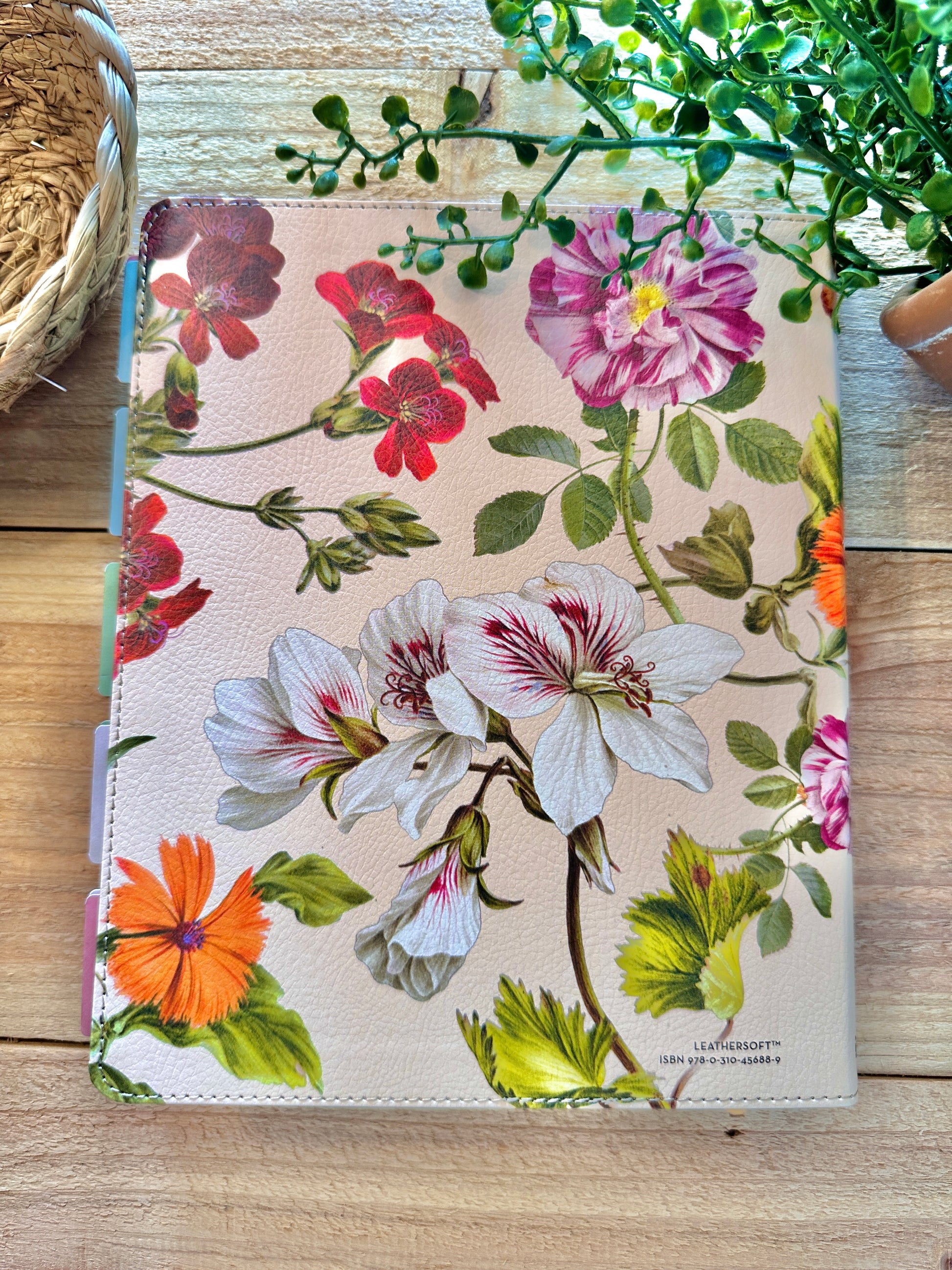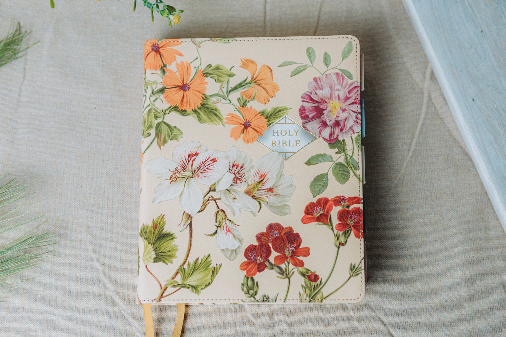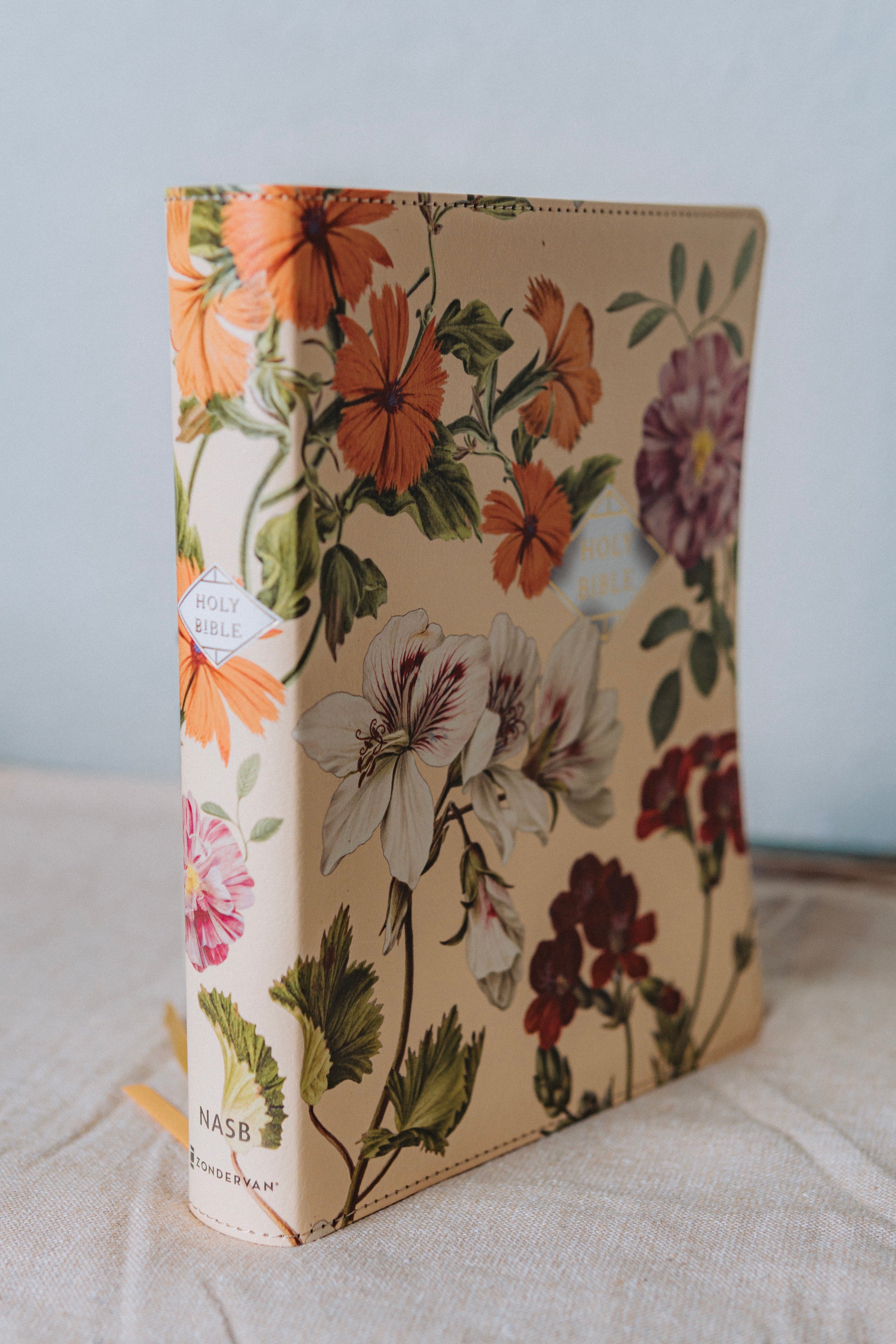 A beautiful NASB Bible ideal for journaling with an exquisite floral cover.