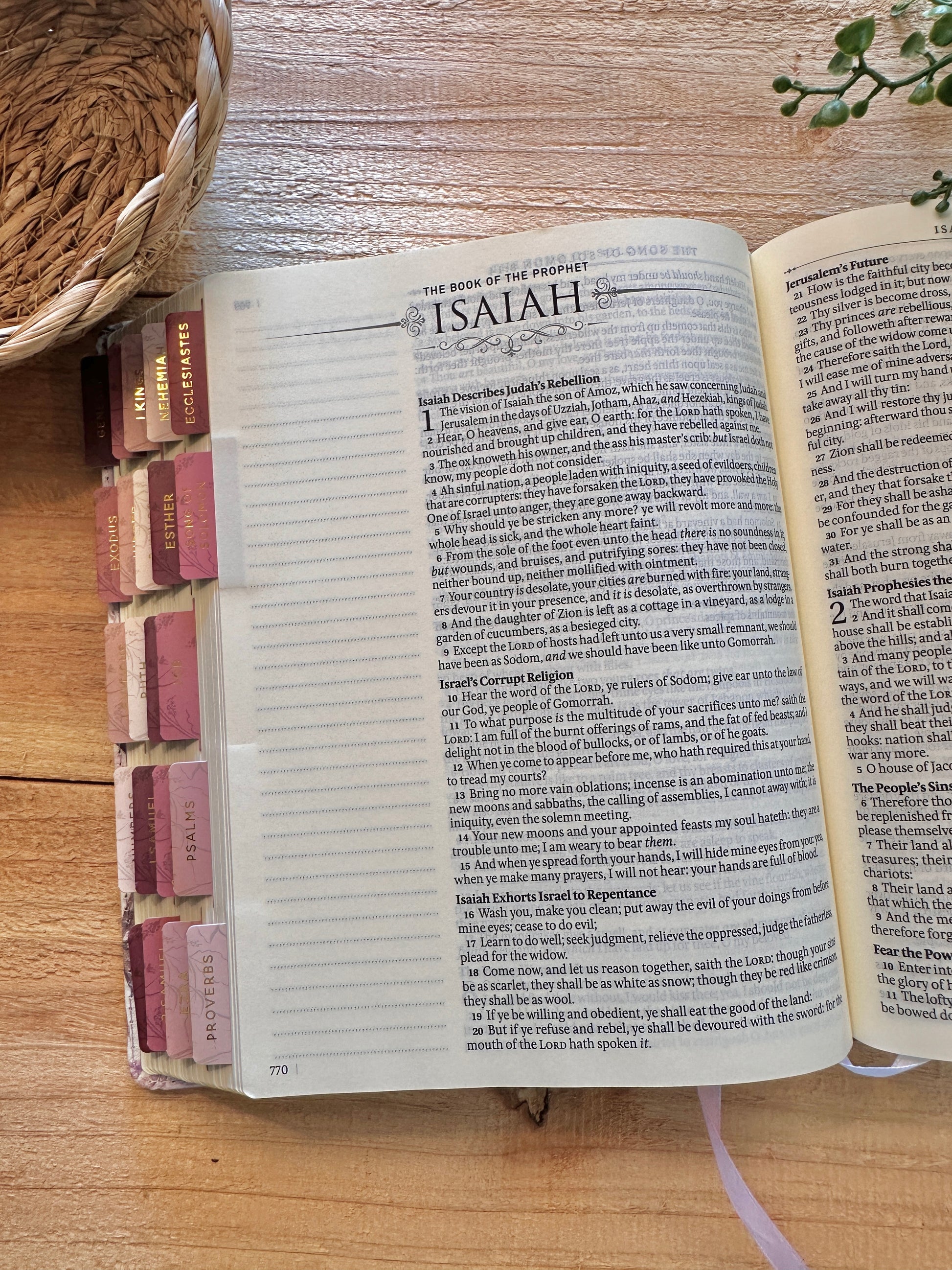 When you use the purple floral faux leather hardcover King James Version note-taking Bible, you can say goodbye to the days of trying to find the perfect journal for your morning devotions. With plenty of lined space, you can keep all your notes and reflections in one place, written out right next to God's word. A solid lilac purple faux leather back cover wraps around the spine and meets a printed faux leather front panel decorated in printed purple water colored flowers and leaves. The note-taking bible features uniquely wide side margins that are lined. This space is perfect for making notes while you study God's word. Bible comes with beautiful tabs to help find your scriptures quick.