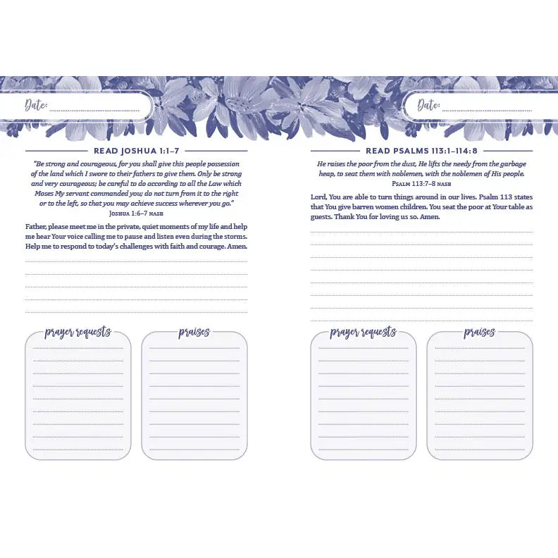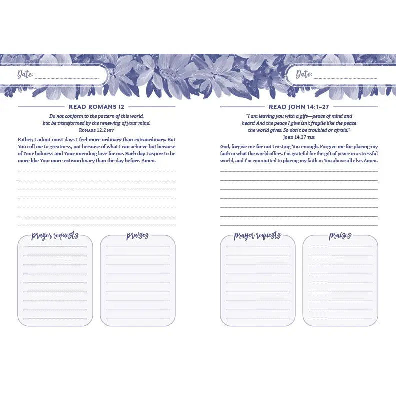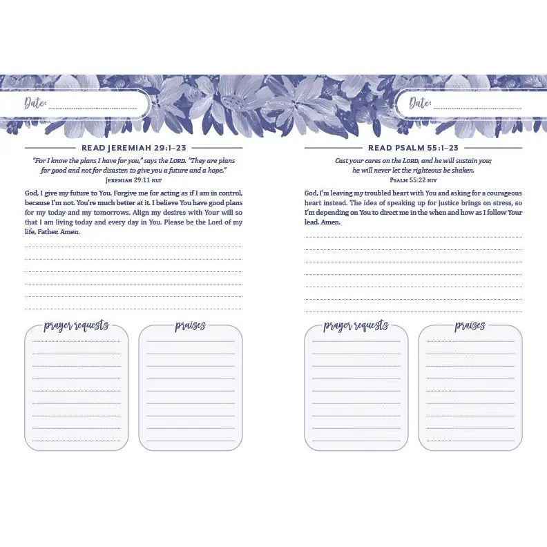 The Perfect Journal for Your Morning Quiet Time My Morning Prayer and Praise Journal gives you the perfect place to begin your day in quiet Bible study and conversation with Jesus. Each page features a place to record the date a Bible reading plan scripture an inspiring starter prayer areas for prayer requests and praises Perfect for women of all ages, this journal offers nearly 6 months' worth of daily prayer journaling.