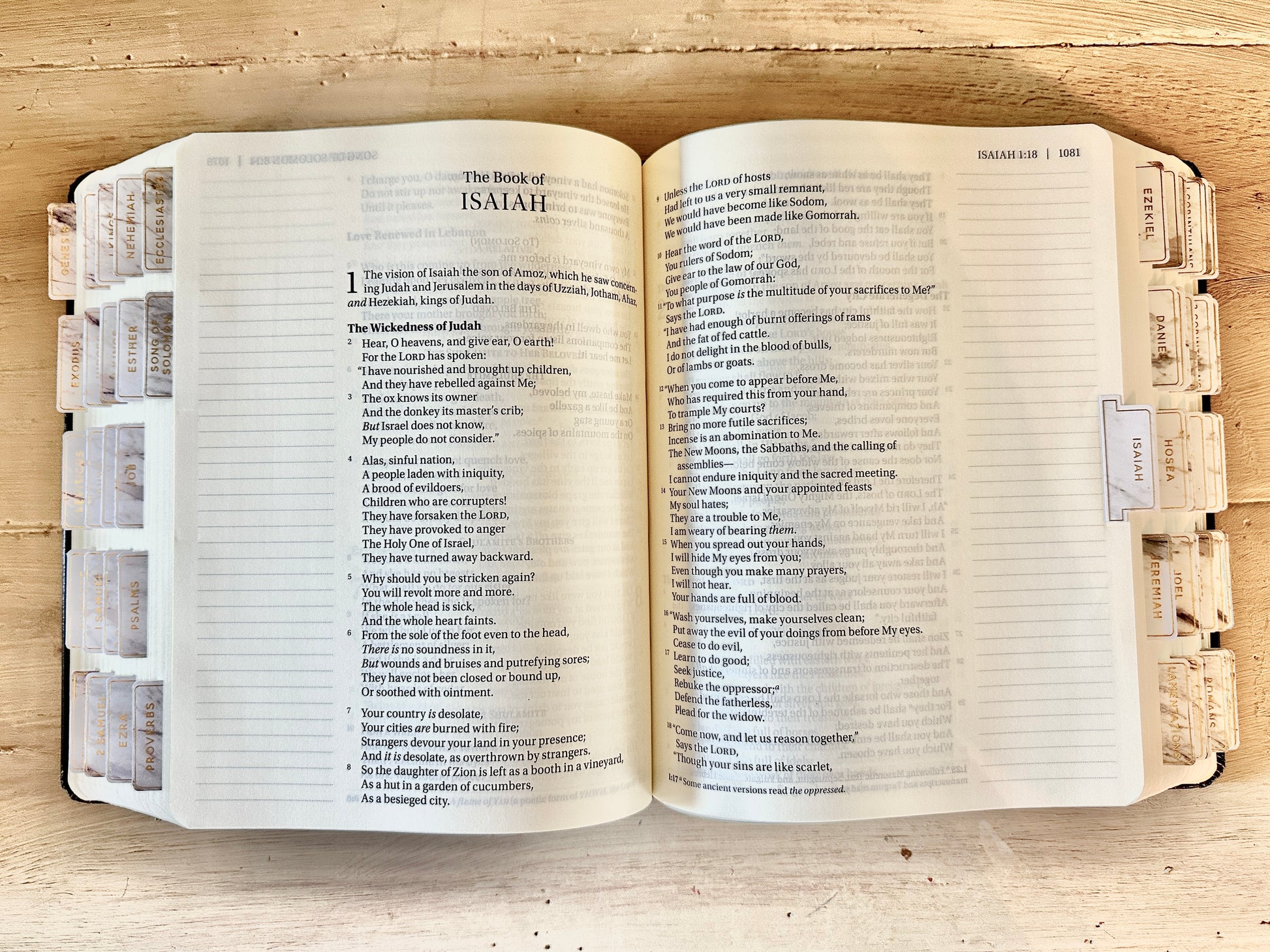 - Bibles all come with bible tabs to make it easier to find your chapters